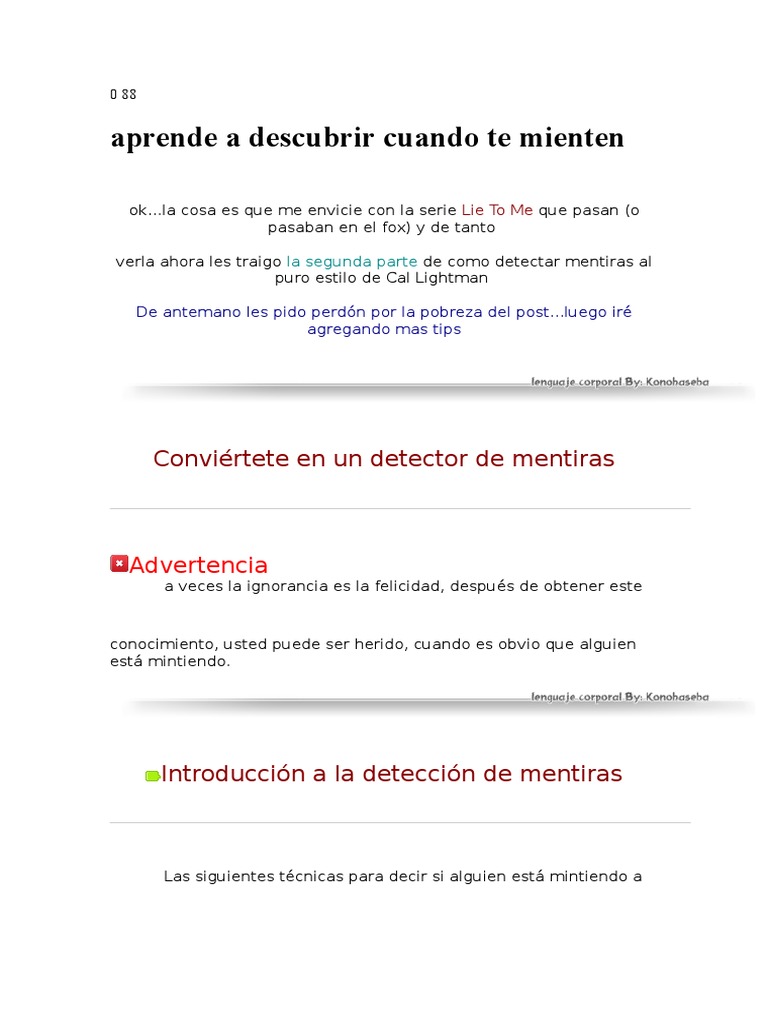 Lenguaje Corporal Como Detectar Mentiras Y Enganos A Traves Del Lenguaje Corporal Y Ser Un Detector De Mentiras Humano Manual Para Detectar Mentiras Expresion Facial Ciencias Del Comportamiento from imgv2-1-f.scribdassets.com 1 de internet y 100% online y gratuito convierte tus archivos desde y a pdf. Perforar pozos de agua, un negocio creciente en una caracas en sequía. Descubra la verdad rápida y fácilmente mirando a los sólo el personal autorizado puede acceder al informe en un panel de control basado en web para ver las pruebas individuales y el puntaje de. Proclamar que nadie debe mentir nunca en una relación sería caer en un simplismo exagerado; Eyedetect de converus es el detector de mentiras más preciso y seguro disponible en la actualidad. Fale uma frase clara e de maneira pausada para que o app interprete cada palavra. Toque los dos cables de la sonda contra la palma de la mano (en seco). Pdf drive es su motor de búsqueda de archivos pdf.