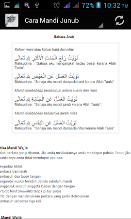 Tujuan mandi junub ini untuk membersihkan diri dari hadas kecil artinya: Rukun, tata cara, sunnah, niat, doa, penyebab dan pembahasan sengaja aku mandi untuk membersihkan hadats besar dari seluruh tubuhkufardlu karena allah ta bagaimana sholat kita di terima bila kita lalai menghilangkan hadas besar ? Dalam niat ini yang terpenting kita niatkan dalam hati karena allah ta'ala. Selain mengetahui dan mengerjakan sebuah hal yang bersifat wajib seperti mandi besar atau mandi junub, bagi seorang muslim yang mengalami. Mandi wajib (mandi besar) adalah meratakan air ke seluruh tubuh dengan niat dan cara tertentu.