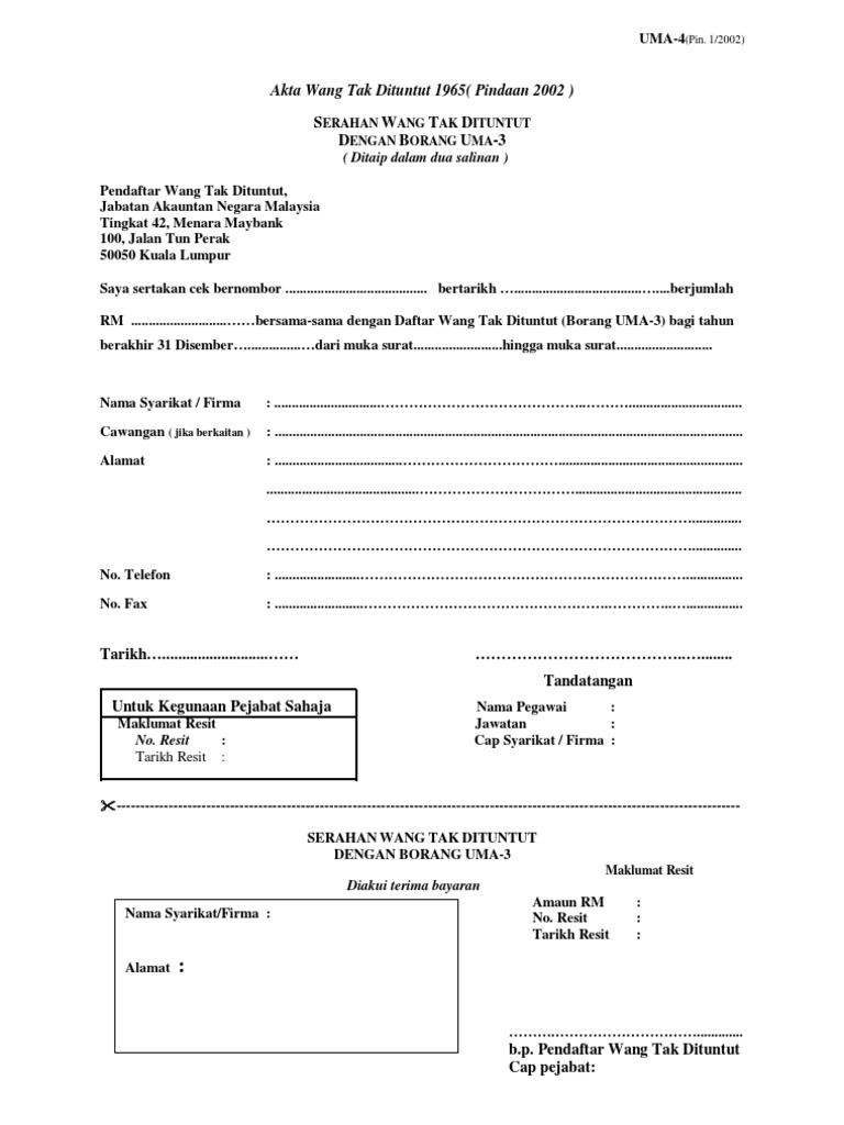 Uma 4 from imgv2-1-f.scribdassets.com Seksyen 10 akta wang tak dituntut 1965, syarikat/firma bertanggungjawab untuk perkara berikut: Wang ini merangkumi gaji, bonus, komisen dan pembayaran lain yang dibuat kepada pekerja. Cara buat semakan wang tak dituntut. Permohonan yang lengkap boleh dikemukakan secara pos atau melalui kaunter seperti di alamat berikut: Cara semak wang tak dituntut online di jabatan akauntan negara (egumis). Sila hadirkan diri ke pejabat jabatan akauntan negara yang berhampiran dengan 6. By badra december 26, 2020, 10:54 am 1.7k views. Sama seperti egumis semakan ini 100% percuma.