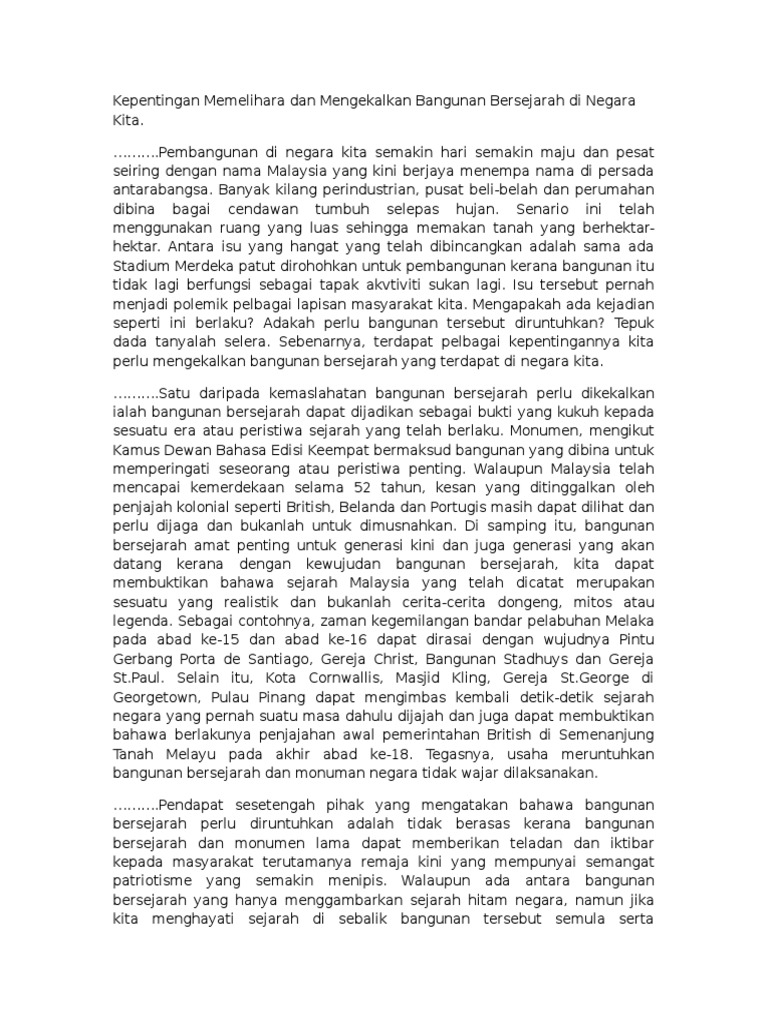 Cara Cara Pemeliharaan Dan Pemuliharaan Bangunan Bersejarah from imgv2-1-f.scribdassets.com Jan 27, 2016 · 2. Nota lengkap tasawwur islam ting 4 disediakan oleh : Cara memelihara dan memulihara bangunan bersejarah: Teknologi hijau atau teknologi alam sekitar adalah penggunaan sains alam sekitar untuk memulihara sumber dan alam sekitar semula jadi dan mengawal kesan negatif aktiviti manusia. Pembangunan mampan adalah teras kepada teknologi alam sekitar yang bermaksud penyelesaian perlu mengambil kira aspek sosial, ekonomi dan alam sekitar. Jan 21, 2013 · selain memperkenalkan sejarah dan cara bermain, pihak media perlu memberikan kesedaran kepada orang ramai akan kepentingan permainan tradisional kepada masyarakat dan negara. Bab 1 mengenali sejarah 1. Nov 02, 2017 · dalam konteks memelihara dan memulihara warisan kaum, pengisytiharan yang pertama pernah diadakan di parlimen dengan mengisytiharkan 50 butiran warisan yang diangkat menjadi warisan kebangsaan pada tahun 2007 bersempena dengan 50 tahun kemerdekaan malaysia.